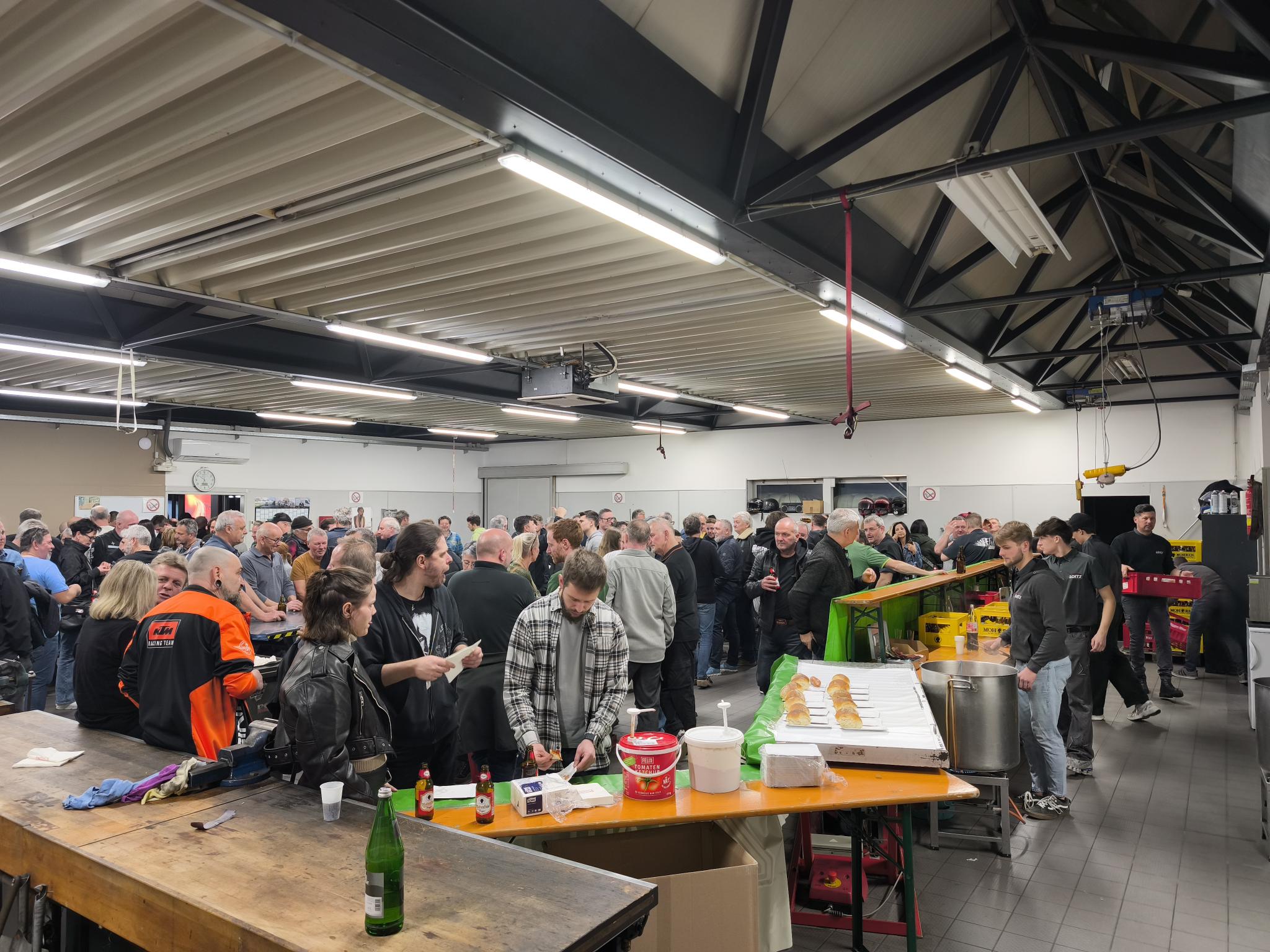 Nach der Messe konnten die Gäste in unserer Werkstatt bei Speisen und Getränken einen schönen Ausklang erleben. Es war eine großartige Gelegenheit für Besucher, sich zu entspannen, auszutauschen und den Tag gemütlich ausklingen zu lassen. Die Atmosphäre war gesellig und entspannt, und es gab genug zu essen und zu trinken, um den Abend zu genießen. Es ist immer schön, nach einer aufregenden Veranstaltung wie der Hausmesse gemeinsam zu feiern und die gemeinsamen Interessen zu teilen.